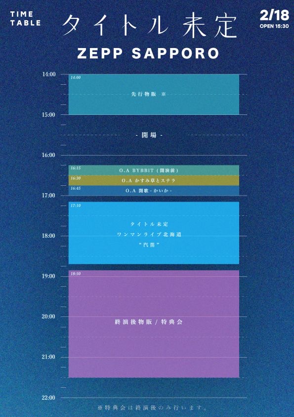 14:00-15:00 先行物販(Zepp Sapporo前)