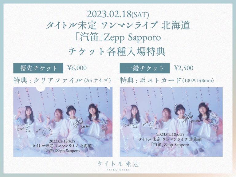タイトル未定 ワンマンライブ 北海道 「汽笛」Zepp Sapporoについてのお知らせ