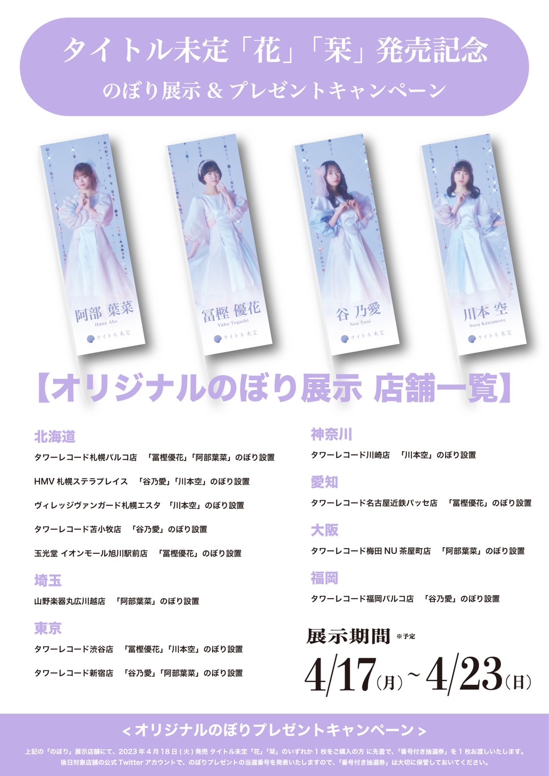 2023年4月18日(火)発売 タイトル未定「花」「栞」発売を記念して、 下記の対象店舗にてキャンペーンを実施いたします。